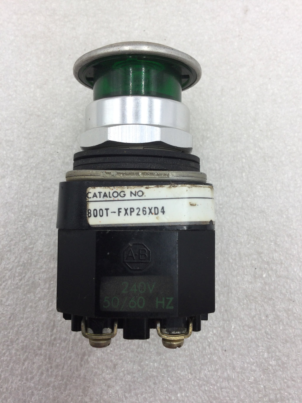 Allen-Bradley 800T-FXP26XD4 Series N 240 VAC Heavy Duty Mushroom Green Lamp Push Pull Start/Stop Button