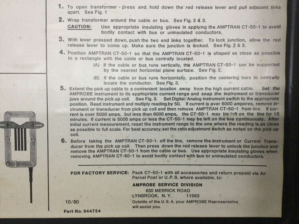 Amprobe Amptran CT-50-1 High Current Transformer in Carrying Case Range 0/5000 AC Amperes 50/60 Hz