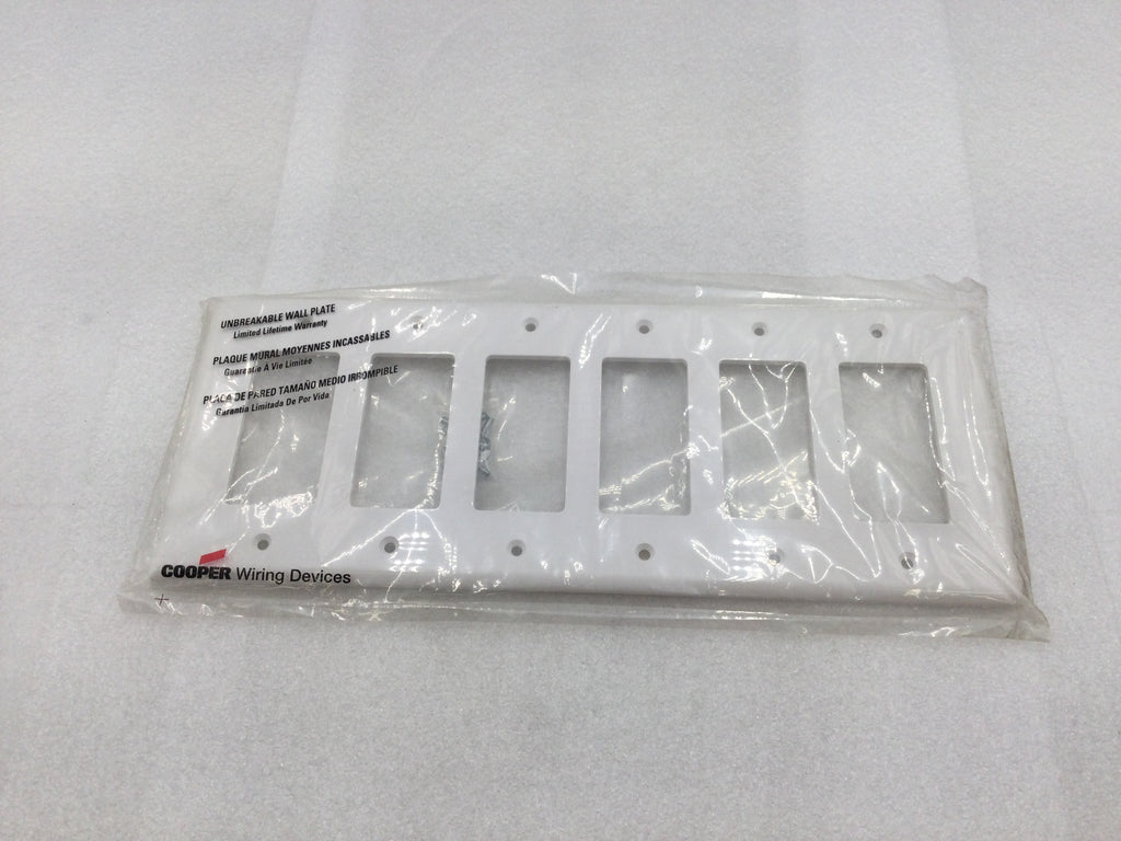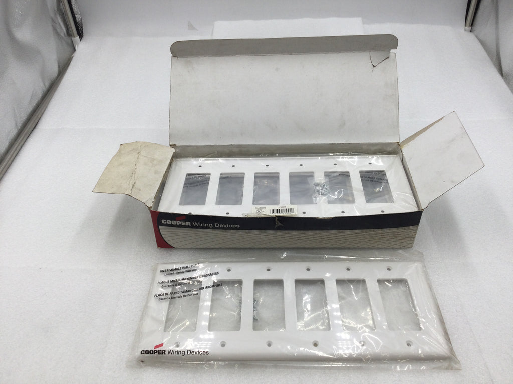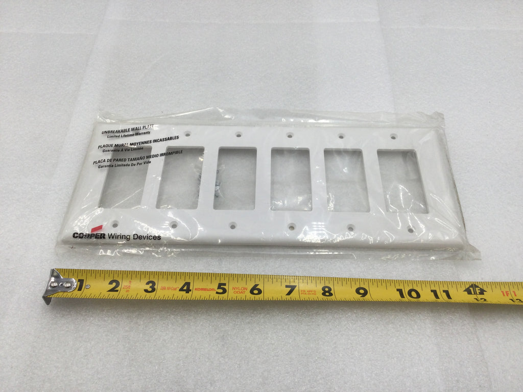 Cooper Wiring PJ266W 5 Gang Unbreakable Decora Style Plate in White (Box of 8)