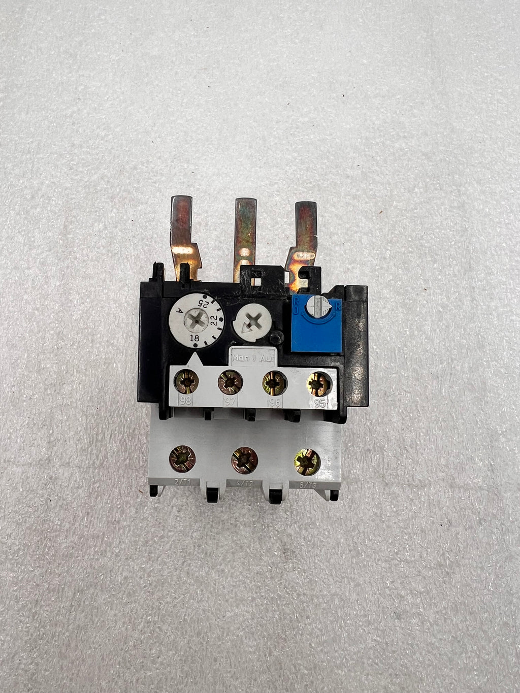 Cutler-Hammer thermal overload relay single phase amperage 18 to 25 ampere with maximum voltage rating of 600v includes bimetallic fixed heater trip class 10 reset type automatic / manual mounting style din rail / panel auxiliary contact 1no-1nc for use with ce contactors.