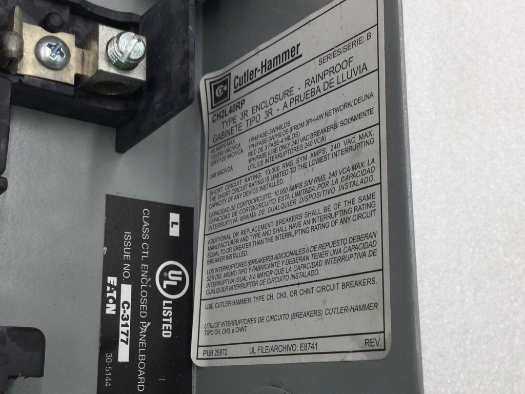Cutler-Hammer CH2L40RP 40 Amp 2 Space 120/240V CH Main Lug Load Center