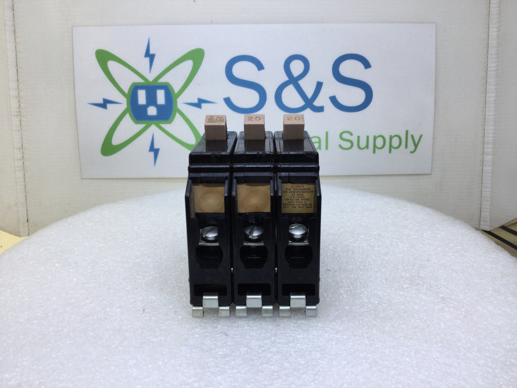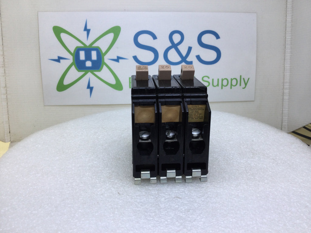 Cutler-Hammer CH320 20 Amp 3 Pole 240V Breaker - 1/2 Notch Missing Handle Tie