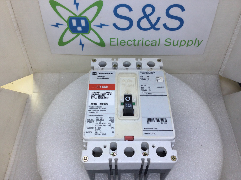 Cutler-Hammer ED3225 225 Amp 3 Pole 240v ED65k Circuit Breaker -Red Label