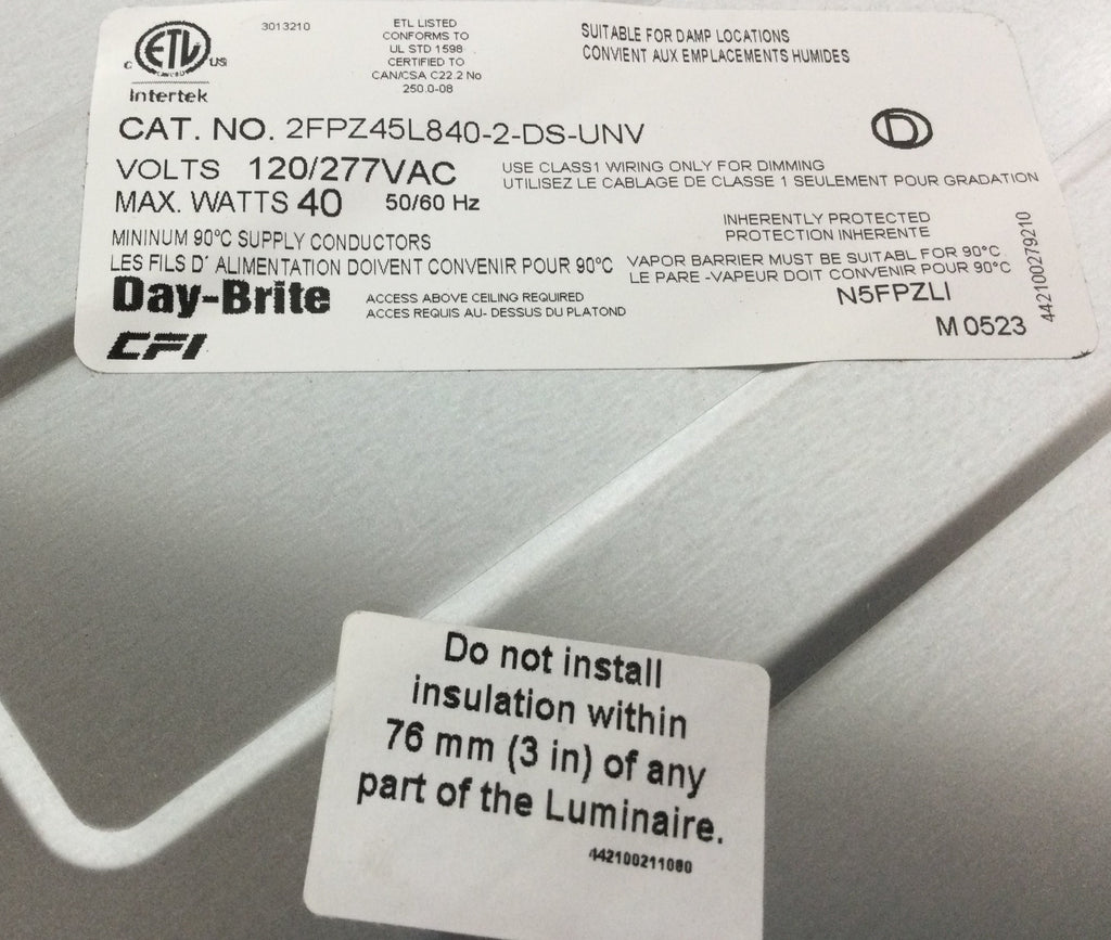 Day-Brite CFI 2FPZ45L840-2-DS-UNV-DIM 2 X 2 LED Panel 120/277 VAC 40 Watts Dimmable
