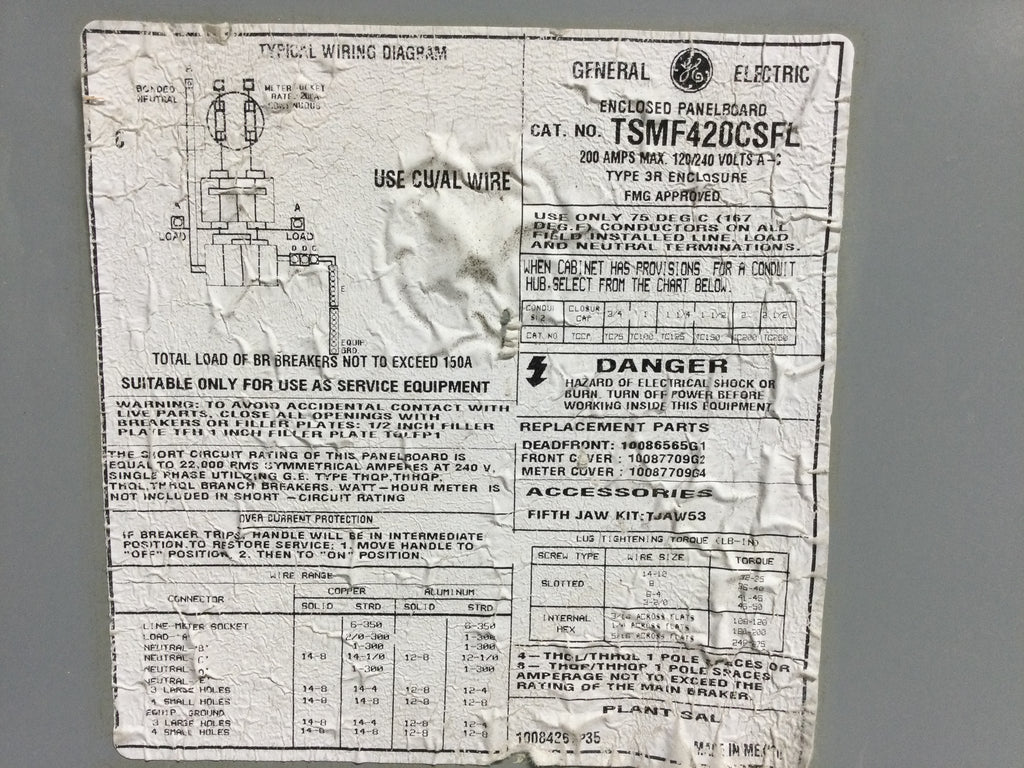 GE General Electric TSMF420CSFL Cover Only Nema 3R 200 Amp 120/240V 16" x 14 3/8"