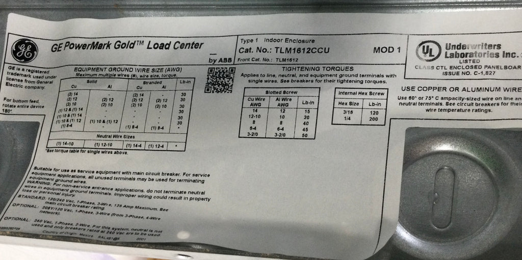 • Type: Main Lug/Type 1 Enclosure/Load Center