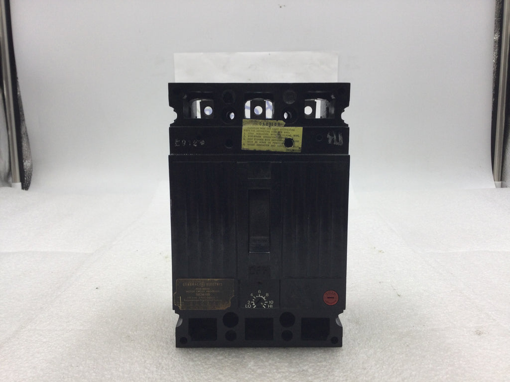 GE General Electric TEC36100 100 Amp 3 Pole 600VAC Instant Trip Type TEC Circuit Breaker