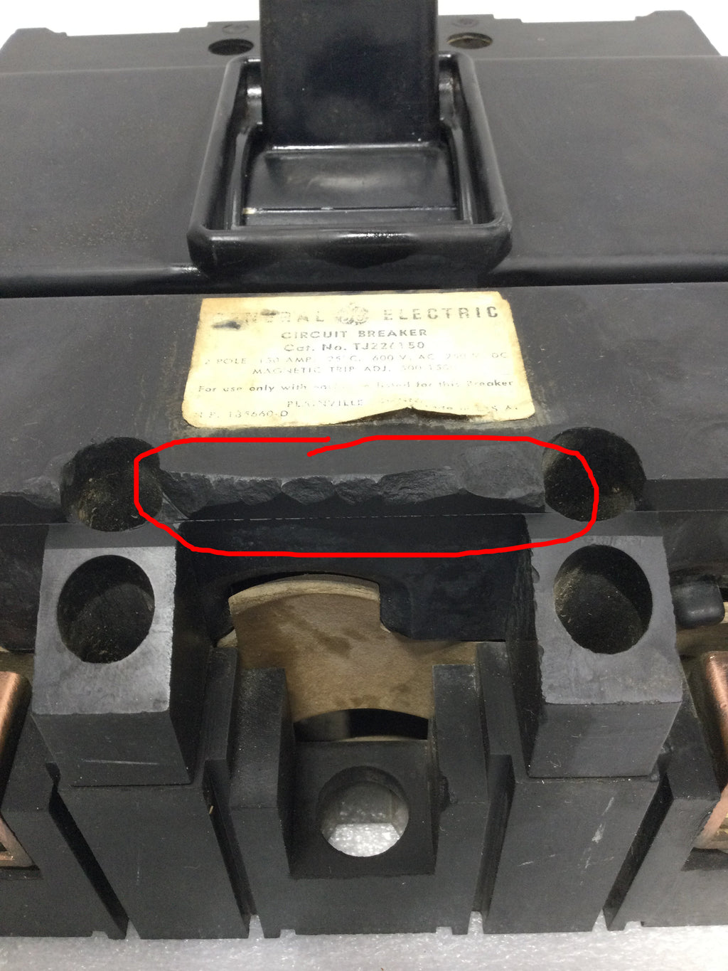 GE General Electric TJ226150 150 Amp 2 Pole 600V Circuit Breaker - Cosmetic Flaw