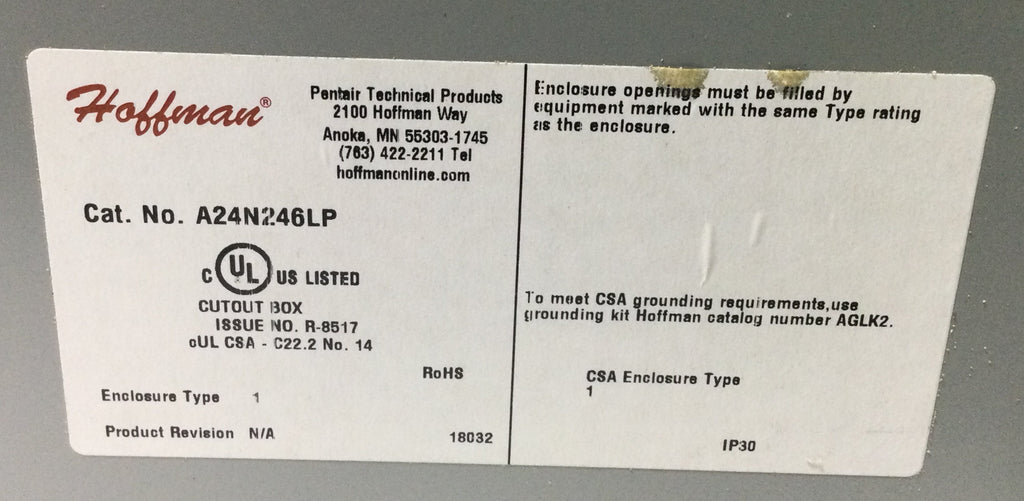 The Hoffman A24N246LP is a Type 1 enclosure junction box designed for secure housing of electrical connections. Featuring a recessed handle, it ensures easy access while maintaining a compact profile. Built for reliable protection against dust and light environmental exposure, this enclosure is ideal for indoor applications requiring durable, safe, and organized junction points.