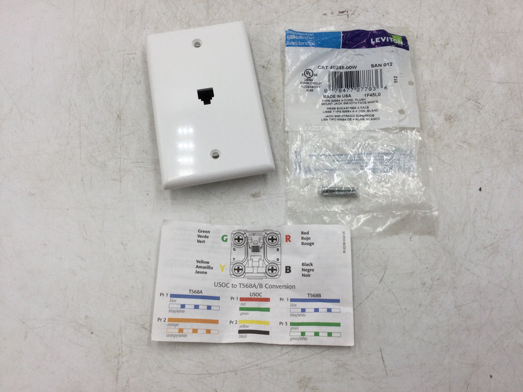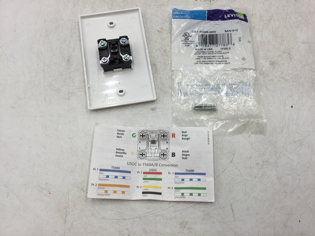 Leviton Type 625B4 White 4-Wire Flush Mount Telephone Jack Smooth Face