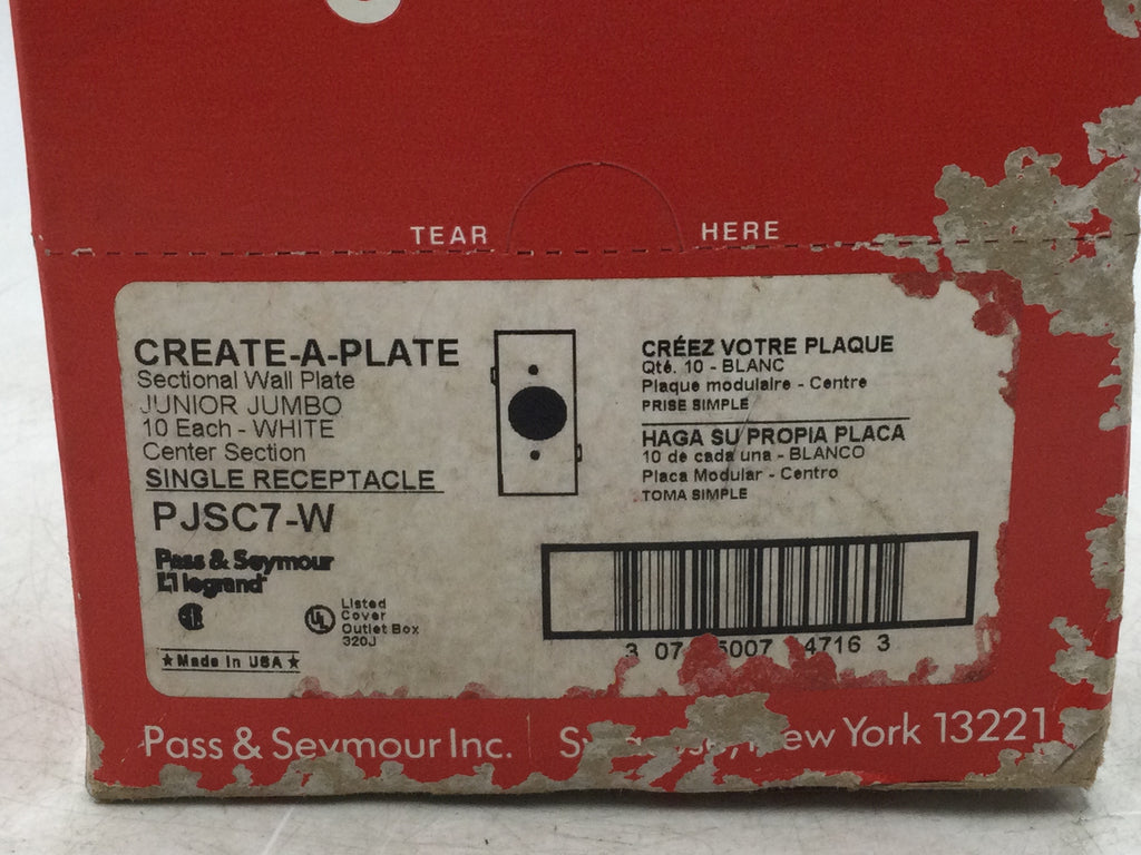 Pass & Seymour/Legrand PJSC7-W Sectional Wall Plate Junior Jumbo Center Section Single Receptacle