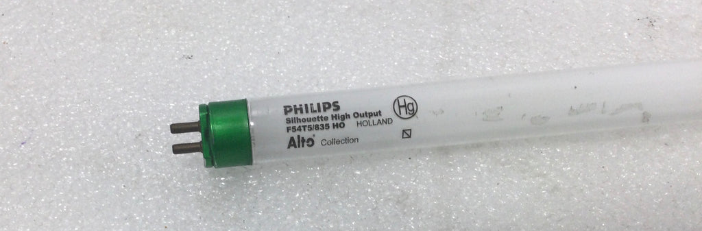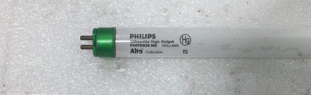 The Philips F54T5-835-HO is a high-output fluorescent tube delivering 54 watts of power and 5000 lumens of light at a warm 3500K color temperature. Designed for professional applications, it provides efficient, consistent illumination ideal for commercial and industrial environments requiring reliable performance and quality light output.