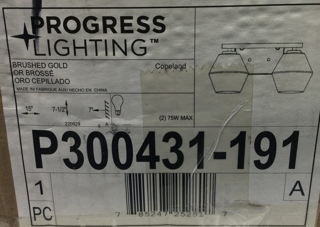 Progress Lighting P300431-191 75W 120V 2 Light 15" Brushed Gold Wall Light