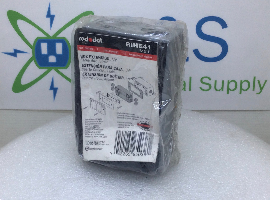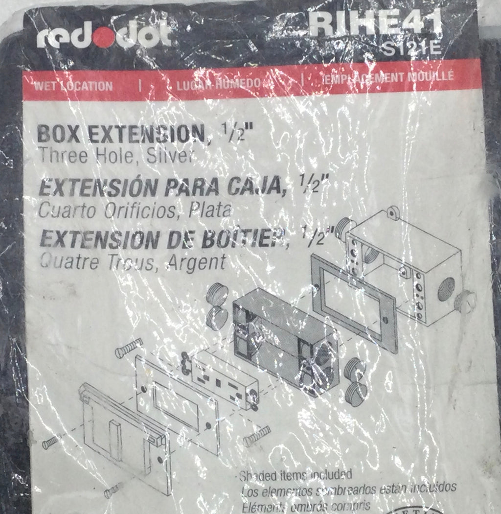 The Red Dot RIHE41 1/2" Three Hole Wet Location Box Extension/Junction Box is designed for secure electrical connections in damp or wet environments. Its three-hole configuration allows for versatile mounting options, while the durable construction ensures protection against moisture.