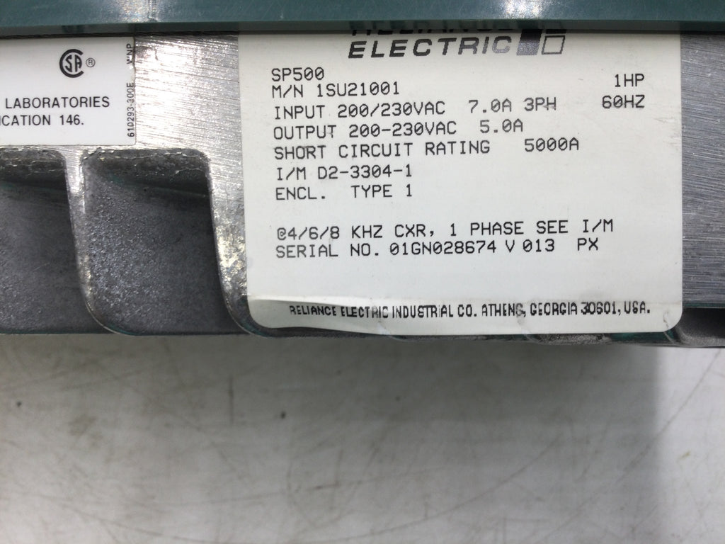 Reliance Electric SP500 ISU21001 AC Drive 1 HP 200-230 VAC 3 Phase 60 HZ Nema Enclosure Type 1
