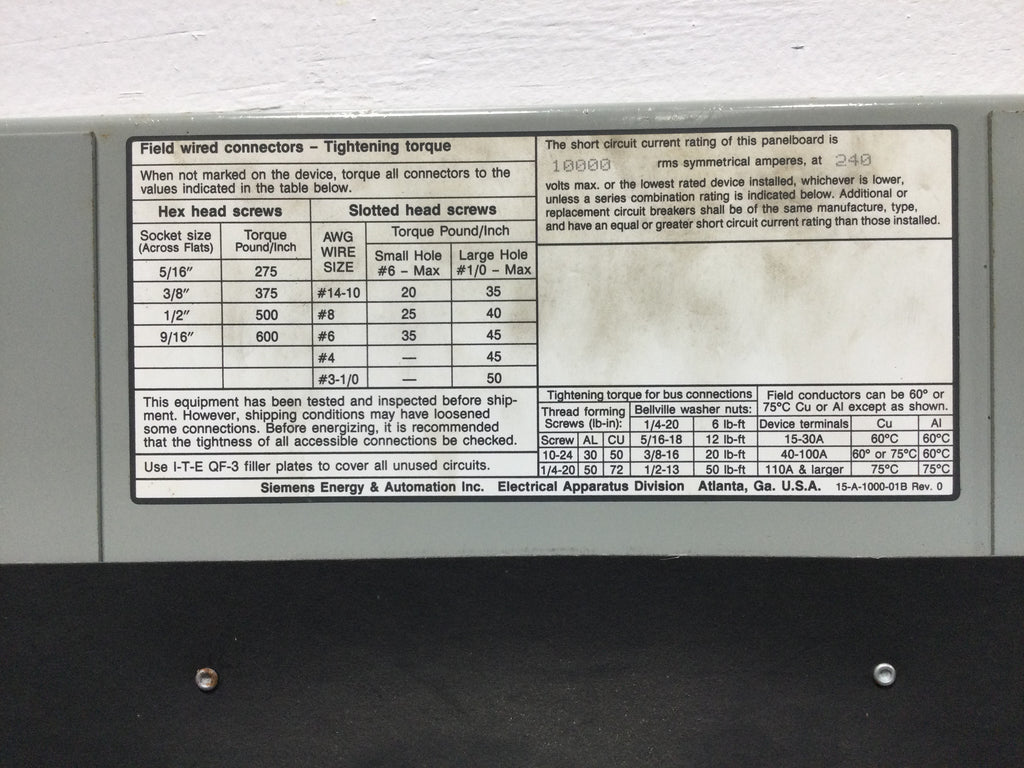 Siemens Dead Front Only ITE Panelboard No. Q242ML4225FTM 42 Space 225 Amp 120/240V 3 Phase 4 Wire Delta 39" x 12 7/8"