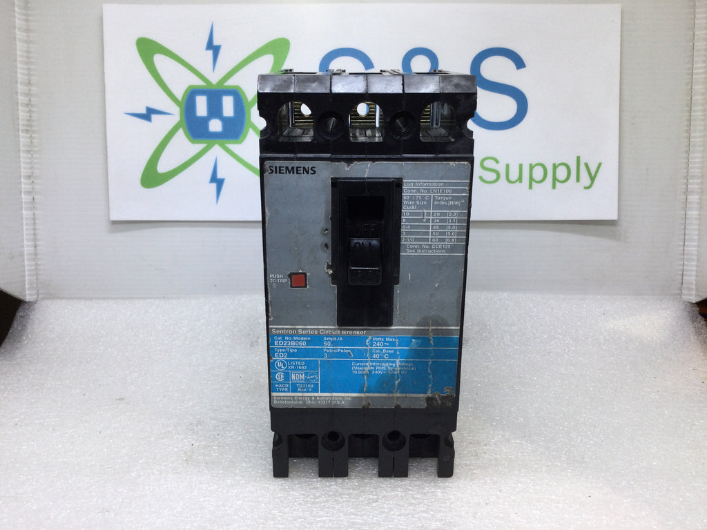 Siemens ED23B060 60 Amp 3 Pole 120/240V Type ED2 Circuit Breaker
