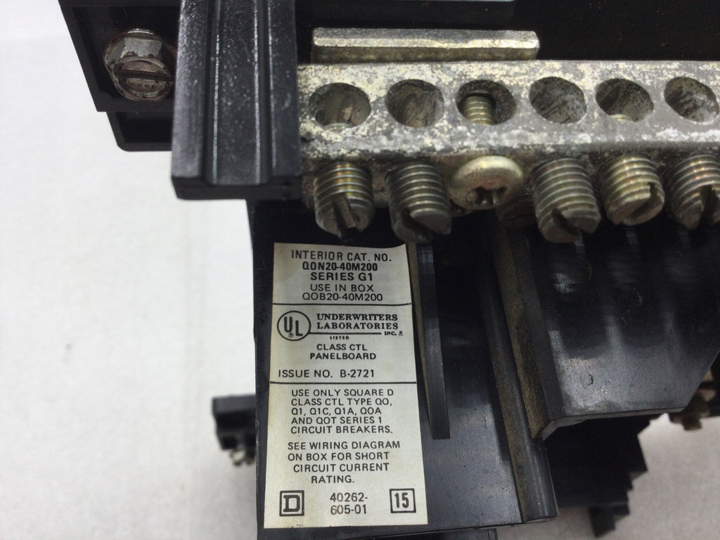 Square D QON20-40M200 200 Amp 10 Space/40 Circuit 120/240 VAC Load Center Guts Only 9" X 14"