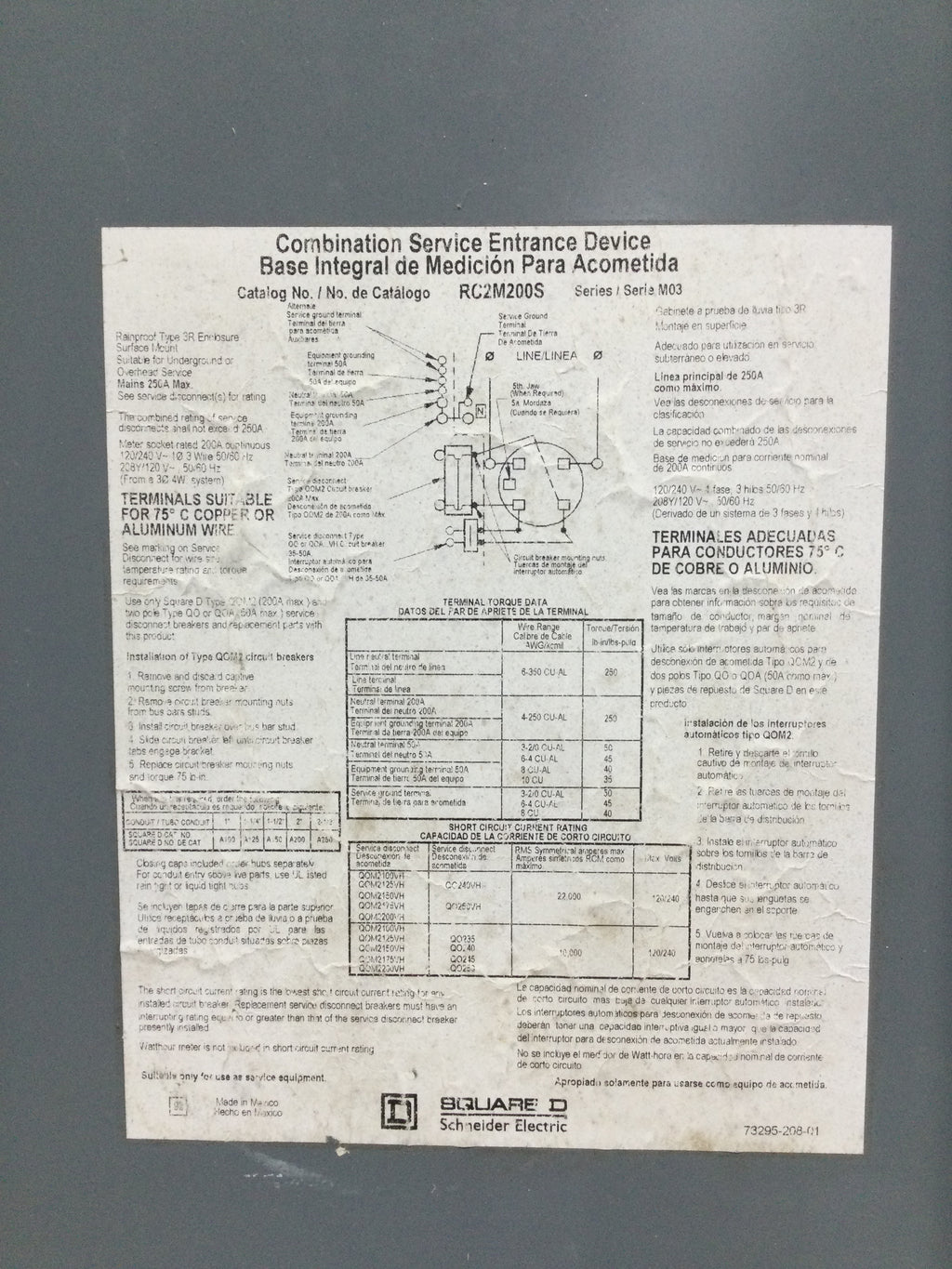 Square D RC2M200S 250 Amp 120/240V Panel Cover Only w/Latch 18 1/4" x 10 1/4"