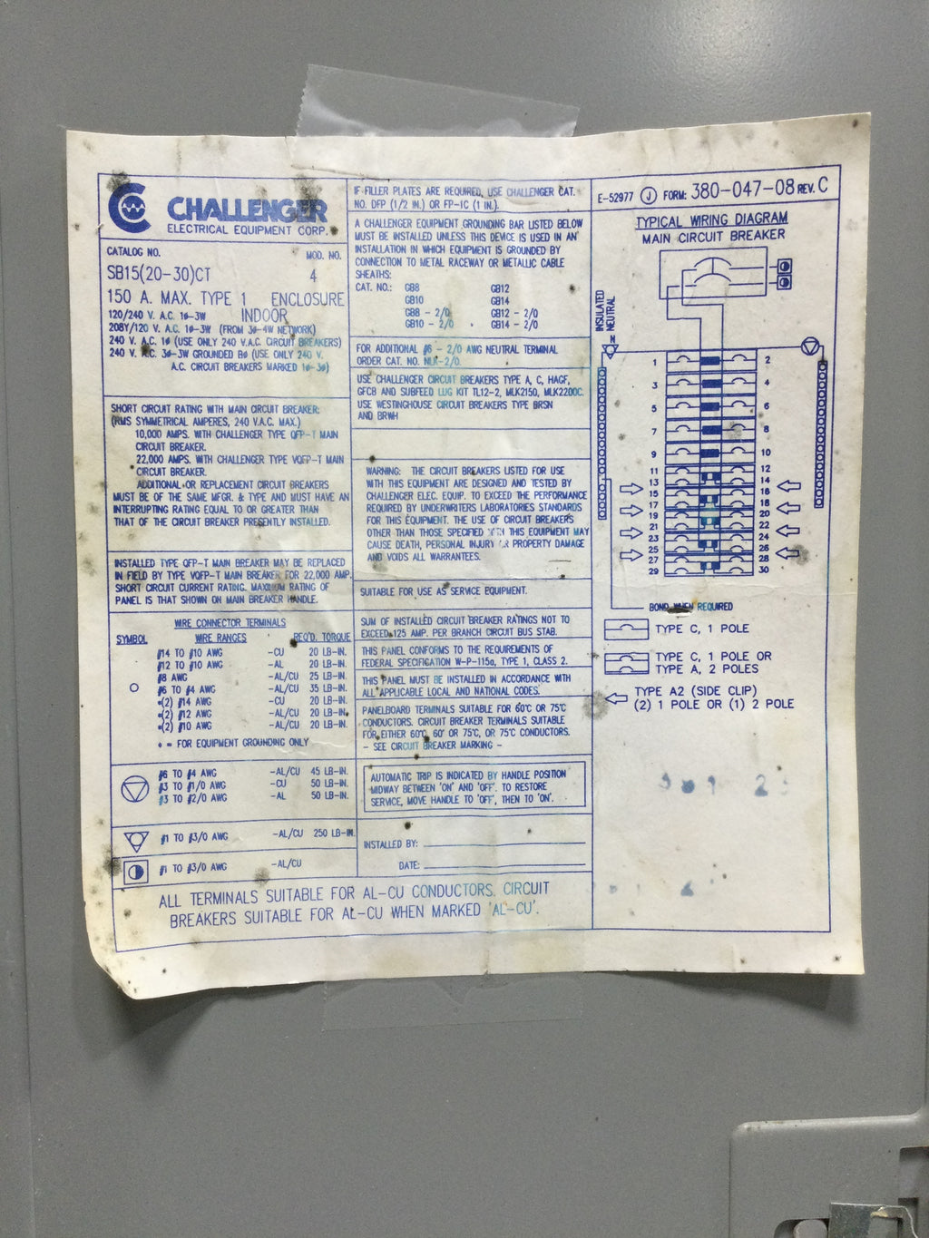 The Challenger SB15(20-30)CT panel door features a 150 Amp capacity and 30 spaces for easy and efficient electrical installations. The 120/240V input ensures reliable and powerful performance, while the included main circuit breaker offers added safety and convenience. With a size of 28" x 15 1/8", this panel door is a perfect fit for any electrical setup.