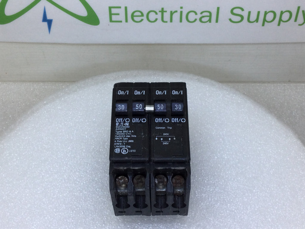 Stay safe with the Eaton/Cutler-Hammer BQC230250 2 Pole Quad-Style Circuit Breaker. This 120/240VAC breaker provides an efficient 30A/50A and 50A/30A power solution and is designed to meet all UL, CSA and ANSI safety requirements. Enjoy reliable protection and help ensure the safety of your family and appliances.