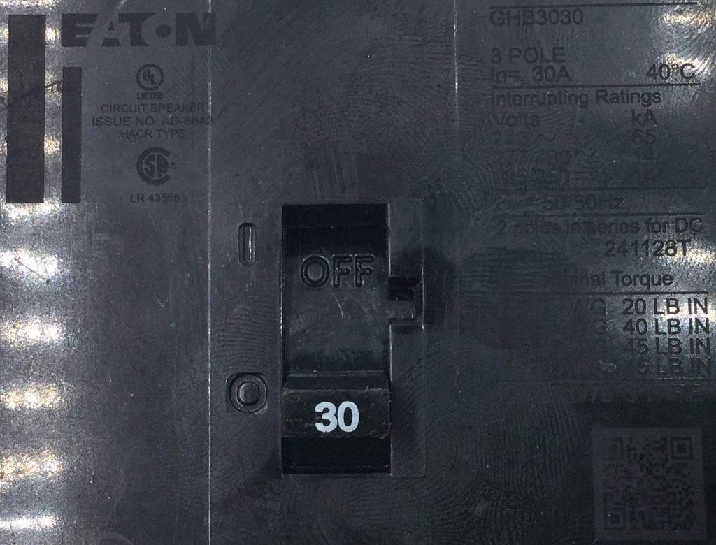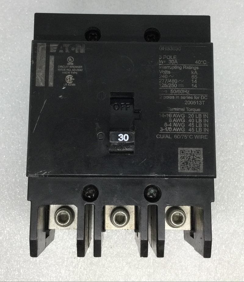Eaton GHB3030 30 Amp 3 Pole 480V Bolt on Circuit Breaker