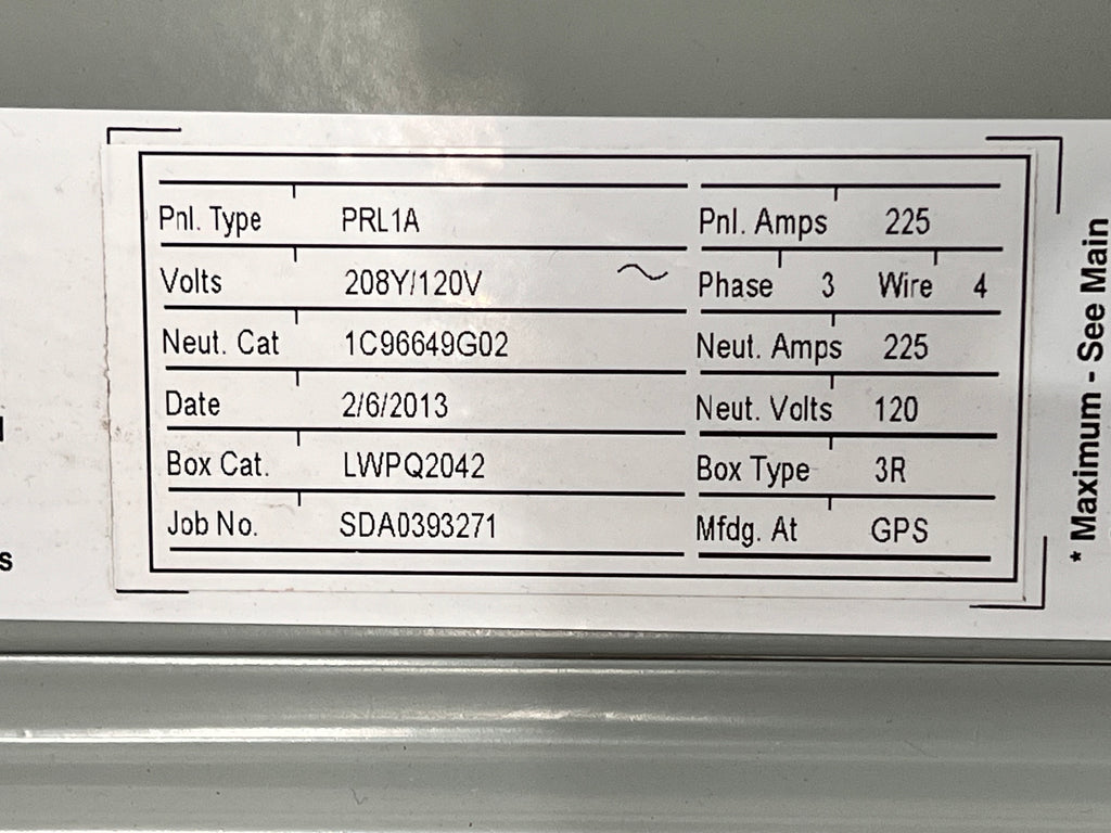 Cutler Hammer PRL1A 225 Amp 208Y/120V 30 Space Deadfront Only