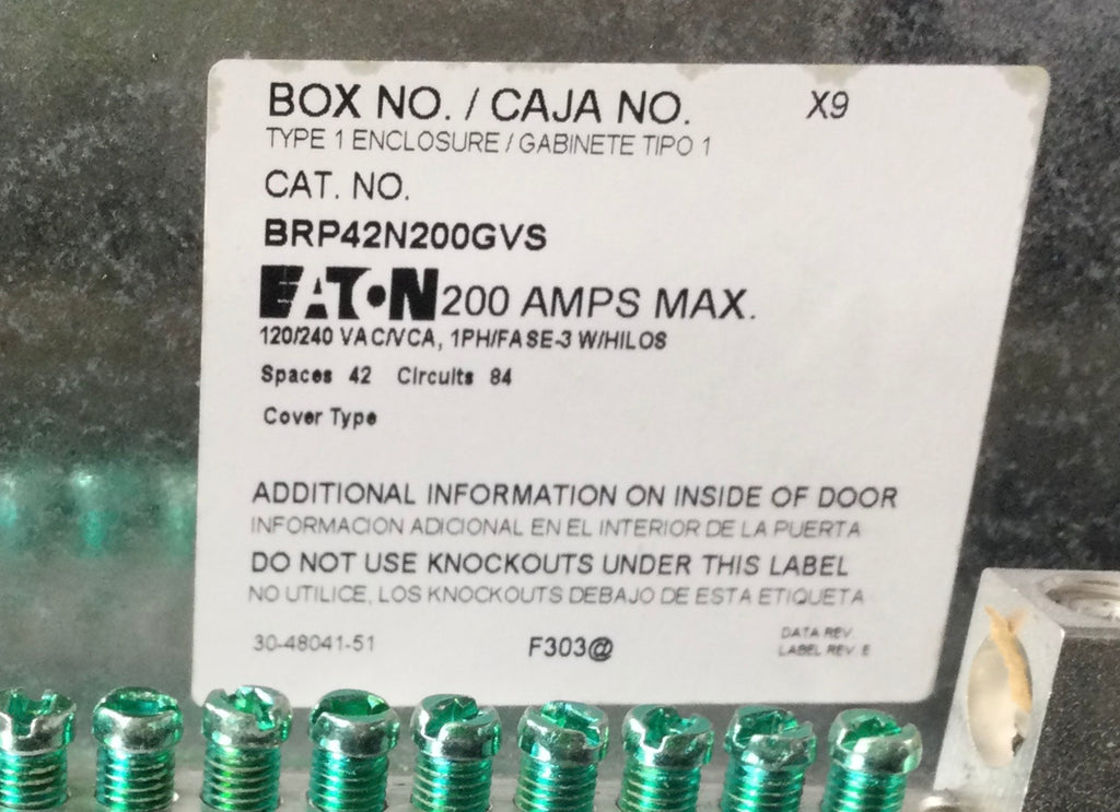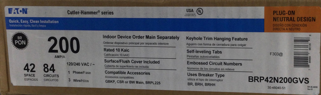 Eaton BRP42N200GVS 42 Space 200 Amp 1 Phase 120/240V Load Center 46" x 15 1/2"