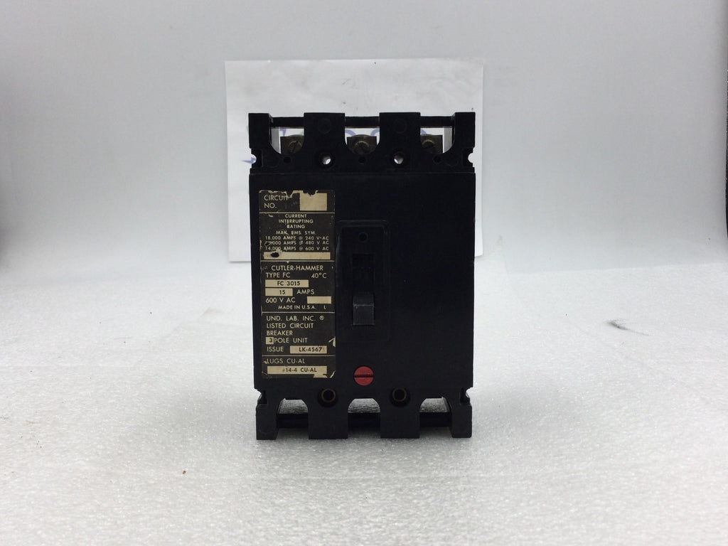 Eaton/Cutler Hammer FC3015 15 Amp 3 Pole 600V Circuit Breaker