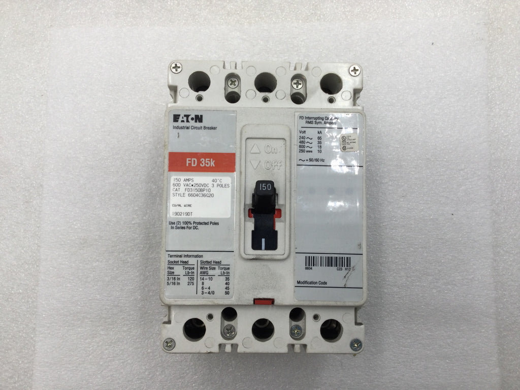 The Eaton/Cutler Hammer FD3150BP10 is a 150 Amp, 3-pole circuit breaker rated for 600V. Designed for reliable overload and short-circuit protection, it ensures safe and efficient operation in commercial and industrial electrical systems. Its robust construction supports stable performance under demanding conditions.