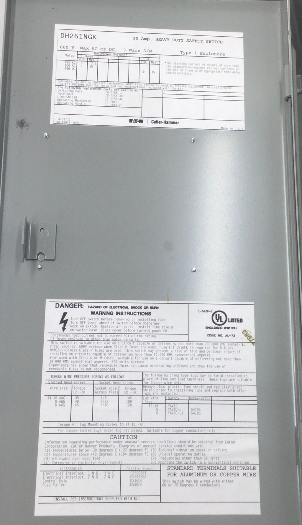 • Type: Nema 1 Enclosure / Fusible HD Safety Switch