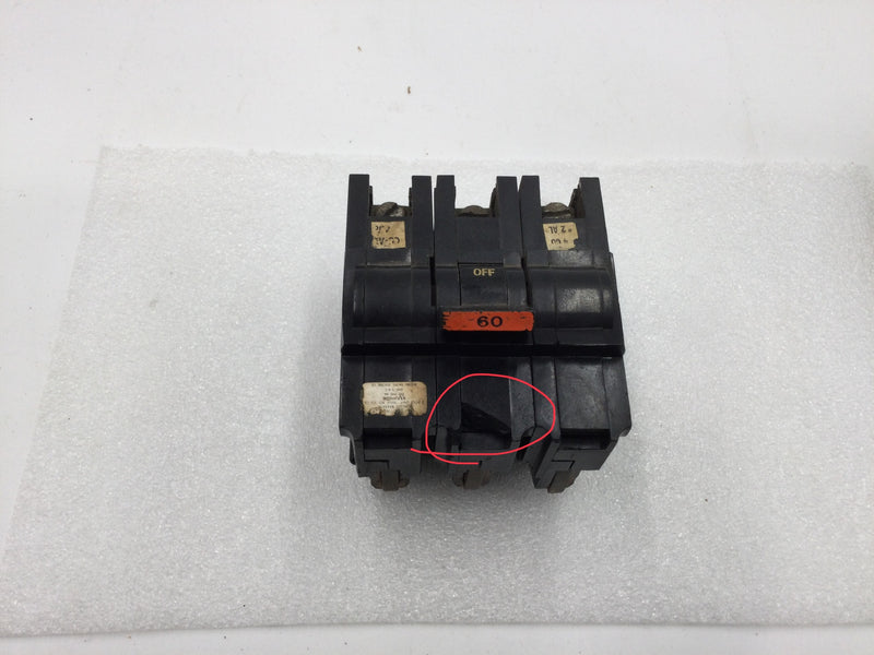 FPE Federal Pacific NA360 3 Pole 60 Amp 240VAC Type NA (Stab-Lok) Circuit Breaker