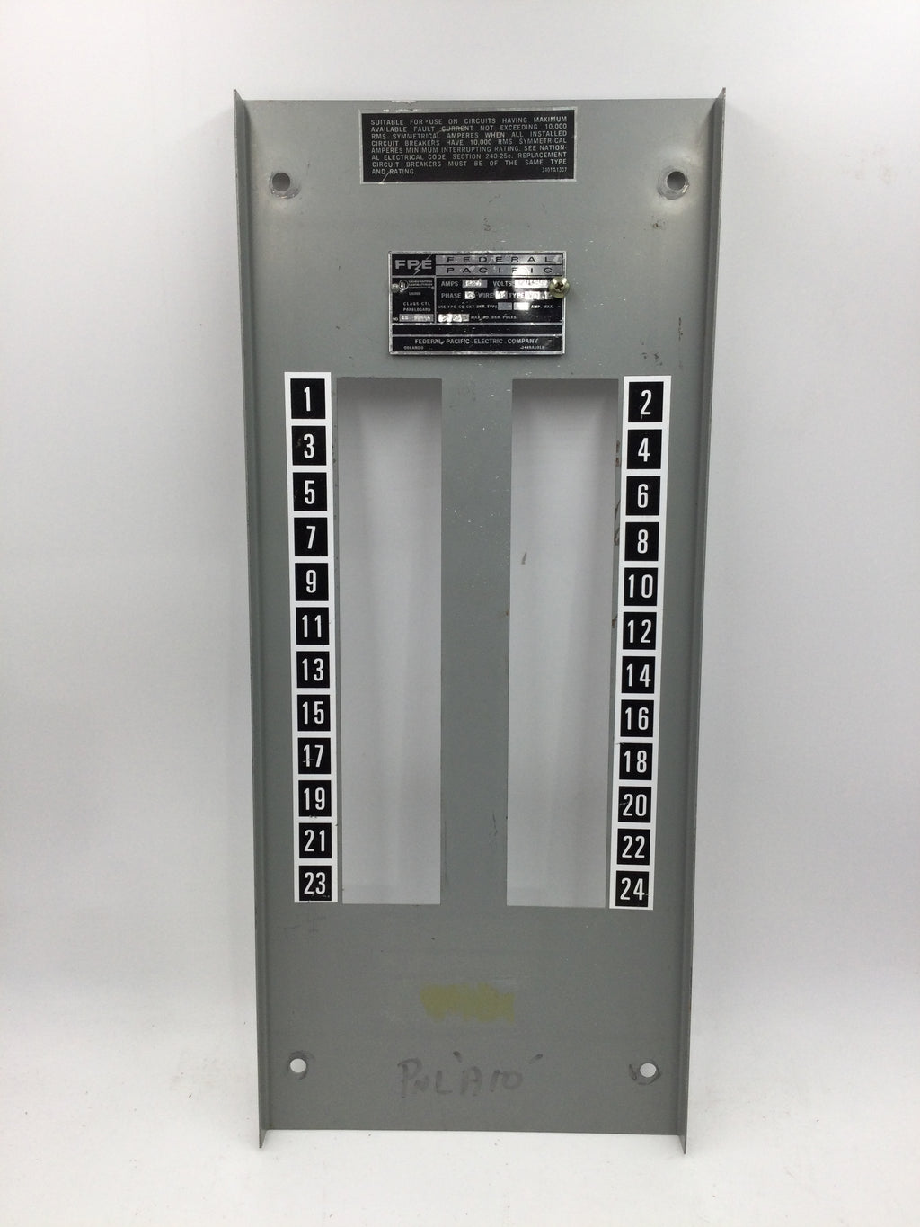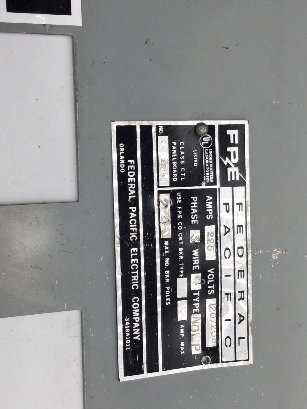 FPE CS 17444 120/208V 225 Amp 3 Phase 4 Wire Type NQLP 24 Space Dead Front Cover 23 1/4" x 9 7/8"