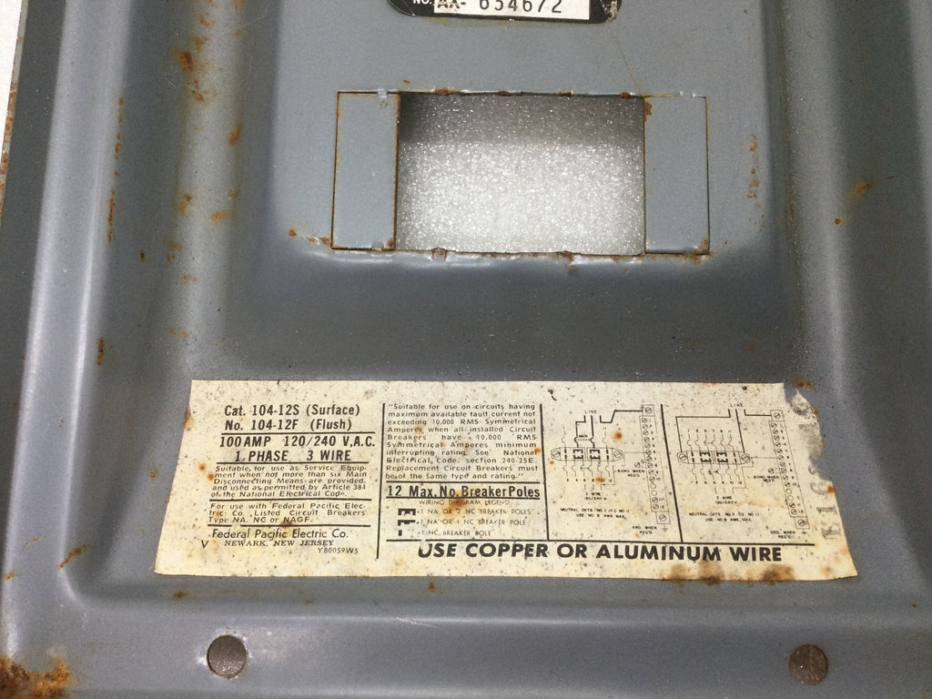 FPE Federal Pacific 104-12s/F 100a 120/240v 1 Phase 3 Wire Enclosed Panelboard 11 5/8" x 7 3/4"