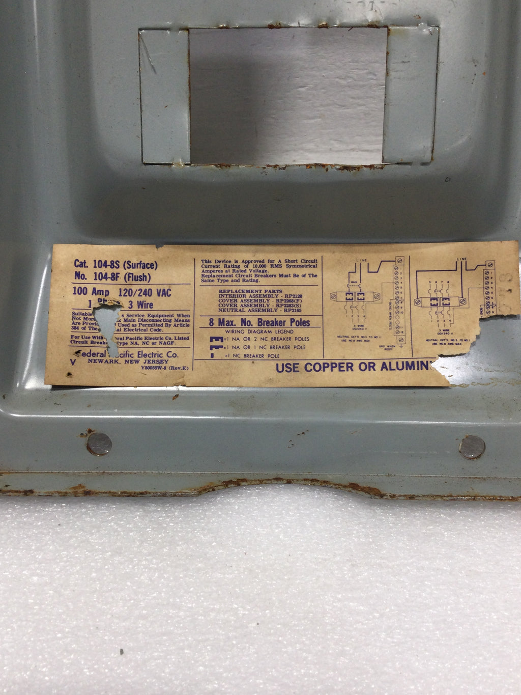 FPE 104-8S/F 100 Amp 4-8 Space 120/240V Load Center Cover Only 12 5/8" x 8 3/4"