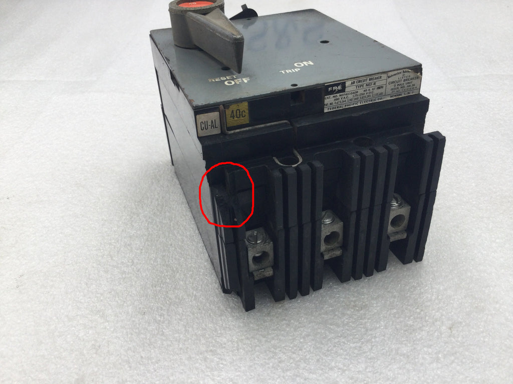 FPE Federal Pacific NEF431040R 40 Amp 3 Pole 480V Breaker - Cosmetic Flaw