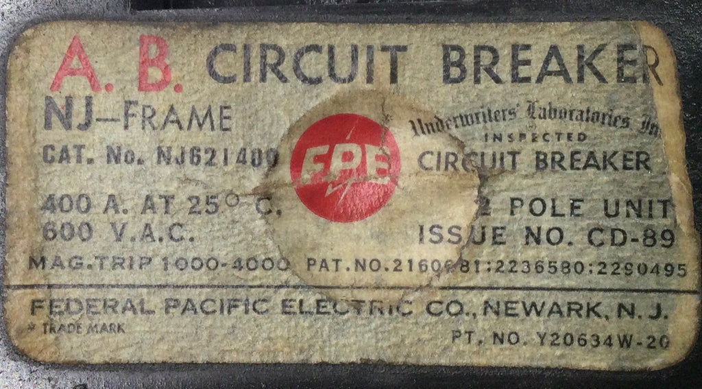 FPE/Federal Pacific NJ621400 400 Amp 2-Pole 600V Circuit Breaker