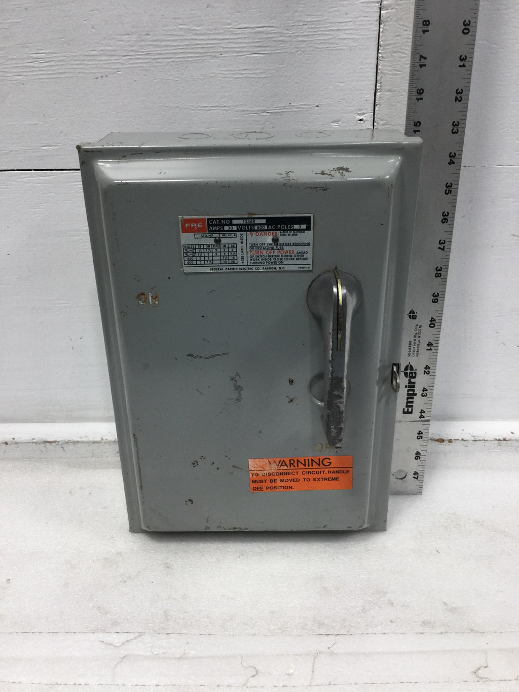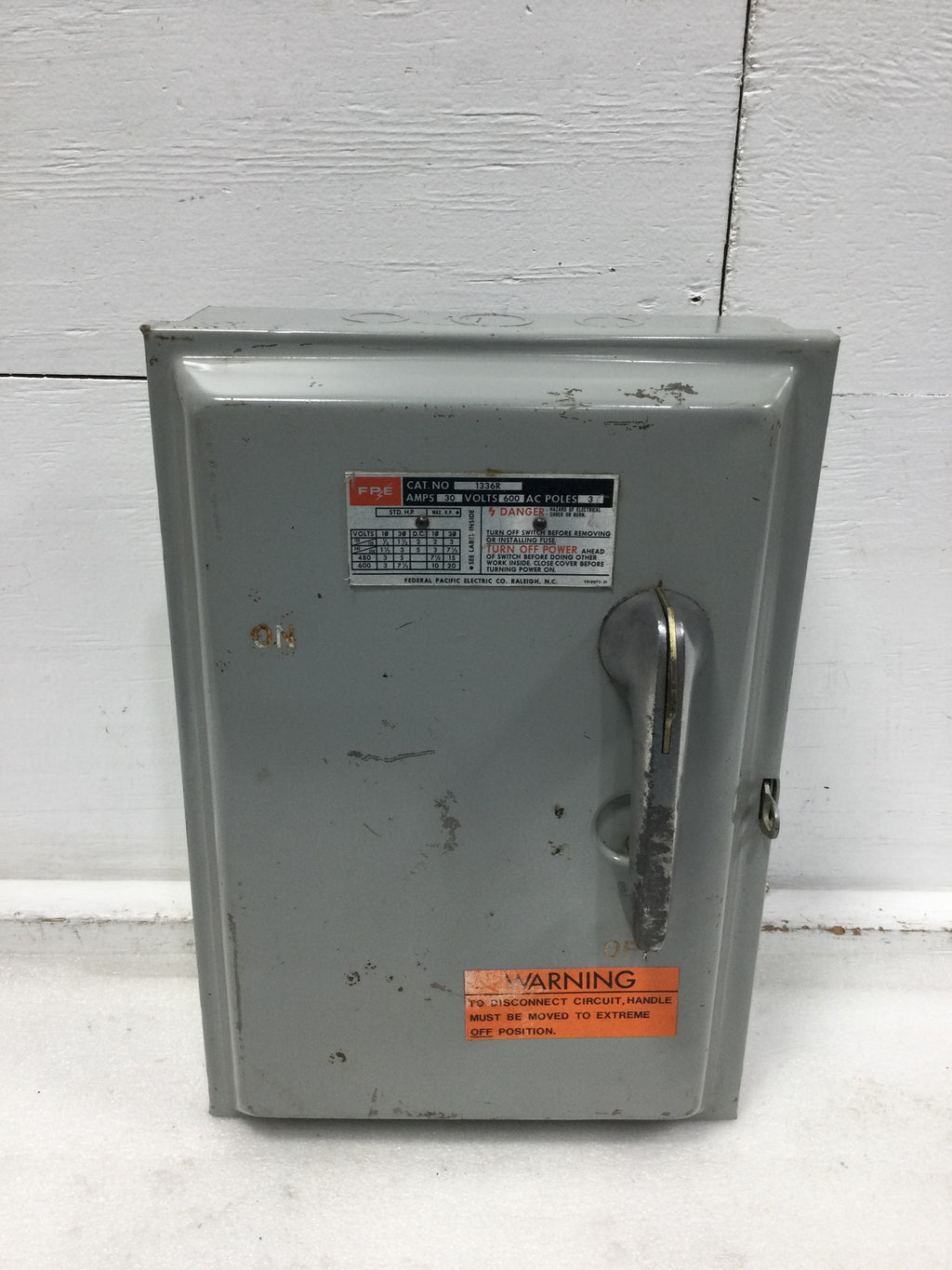 Federal Pacific 1336R Nema 3R 30 Amp 3 Pole 600 VAC 20 HP Fusible Safety Switch