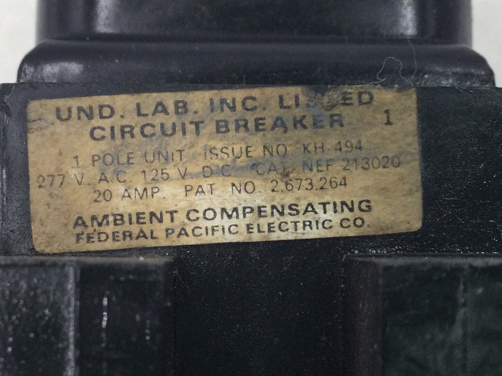 FPE NEF213020 20 Amp 1 Pole 277V Circuit Breaker - Cosmetic Flaw
