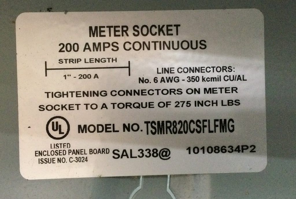 GE TSMR820CSFLFMG 200 Amp 8 Space 120/240V Meter Socket/Load Center