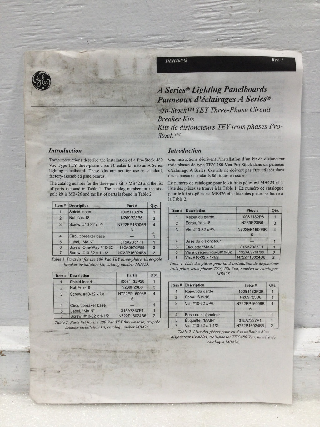 The General Electric MB423 TEY 3-Phase Circuit Breaker Kit is engineered for reliable protection in three-phase electrical systems. Designed to safeguard circuits from overloads and short circuits, this kit ensures operational safety and system integrity. Its robust construction and precise engineering make it suitable for industrial and commercial applications requiring dependable circuit interruption and maintenance ease.