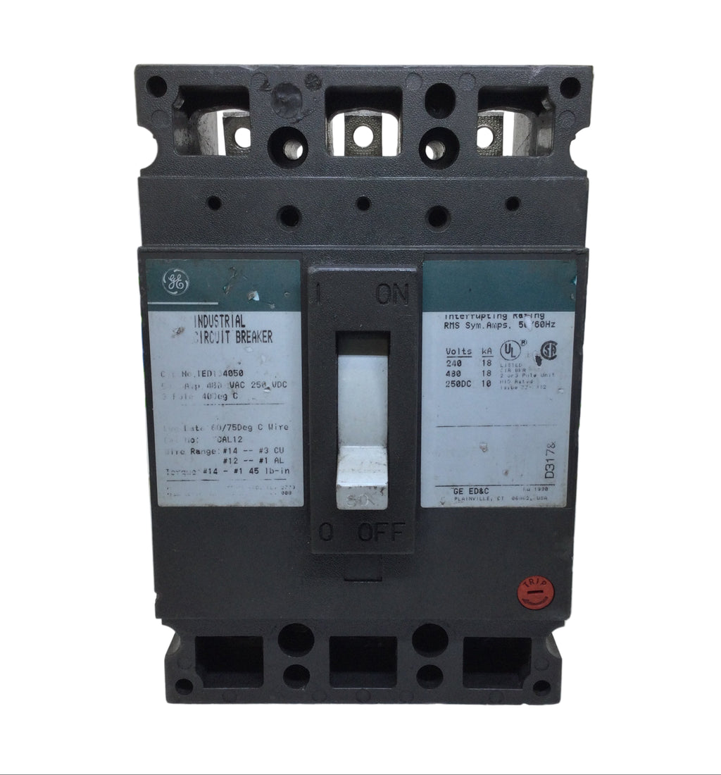 The GE General Electric TED134050 is a 50 Amp, 3-pole circuit breaker designed for 480V electrical systems. Engineered for reliable protection, it ensures safe interruption of electrical faults in commercial and industrial applications. Its robust construction supports consistent performance under demanding conditions, making it an essential component for maintaining system integrity and preventing equipment damage.