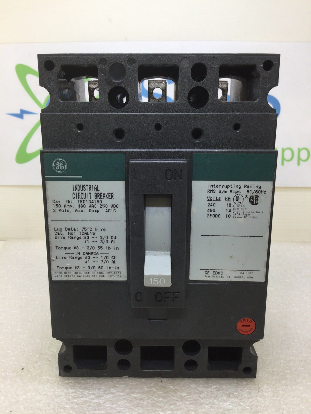 GE General Electric TED134150 150 Amp 3 Pole 480V Circuit Breaker