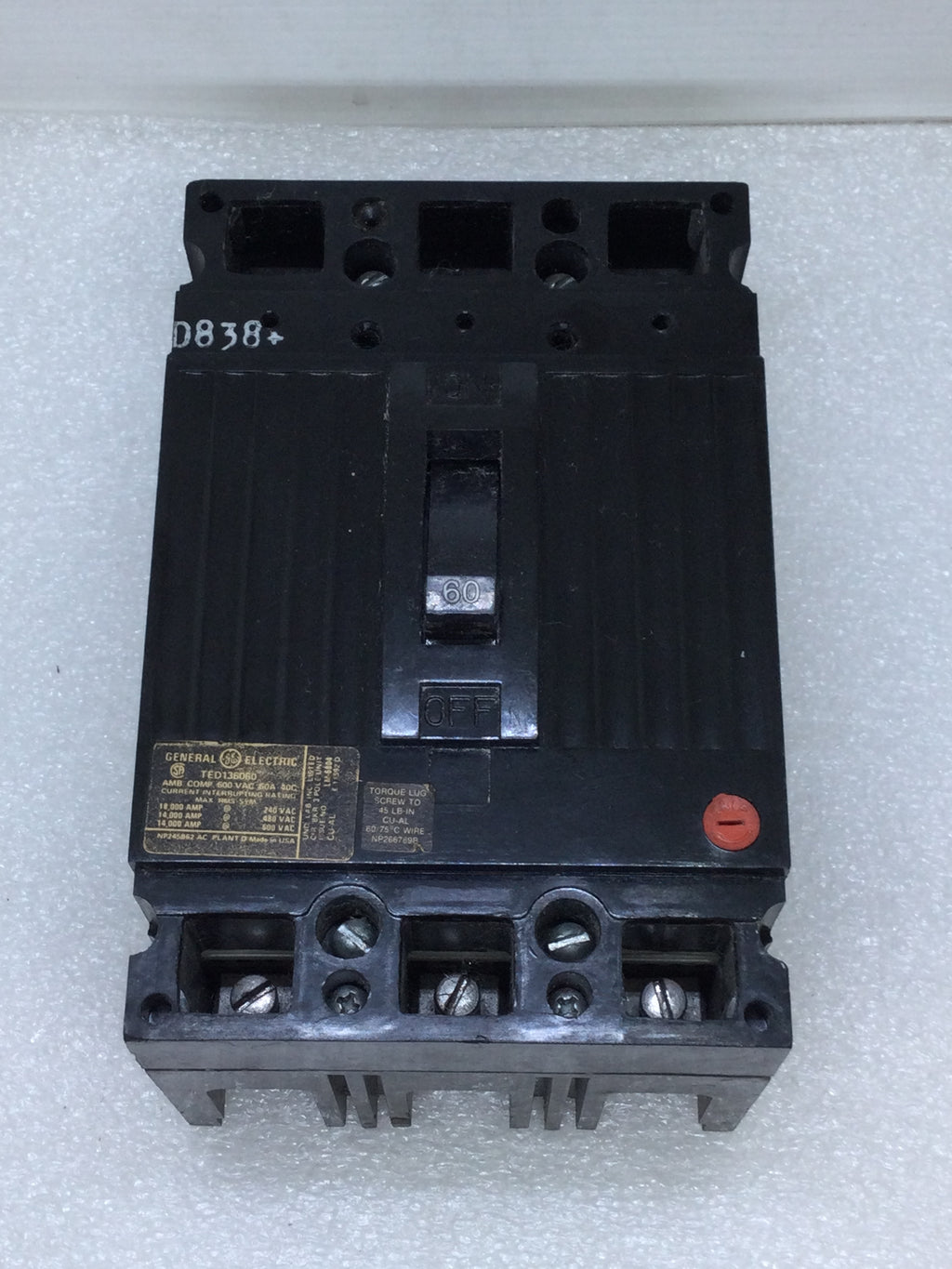 GE General Electric TED136060 60 Amp 3 Pole 600V Circuit Breaker - Cosmetic Flaw