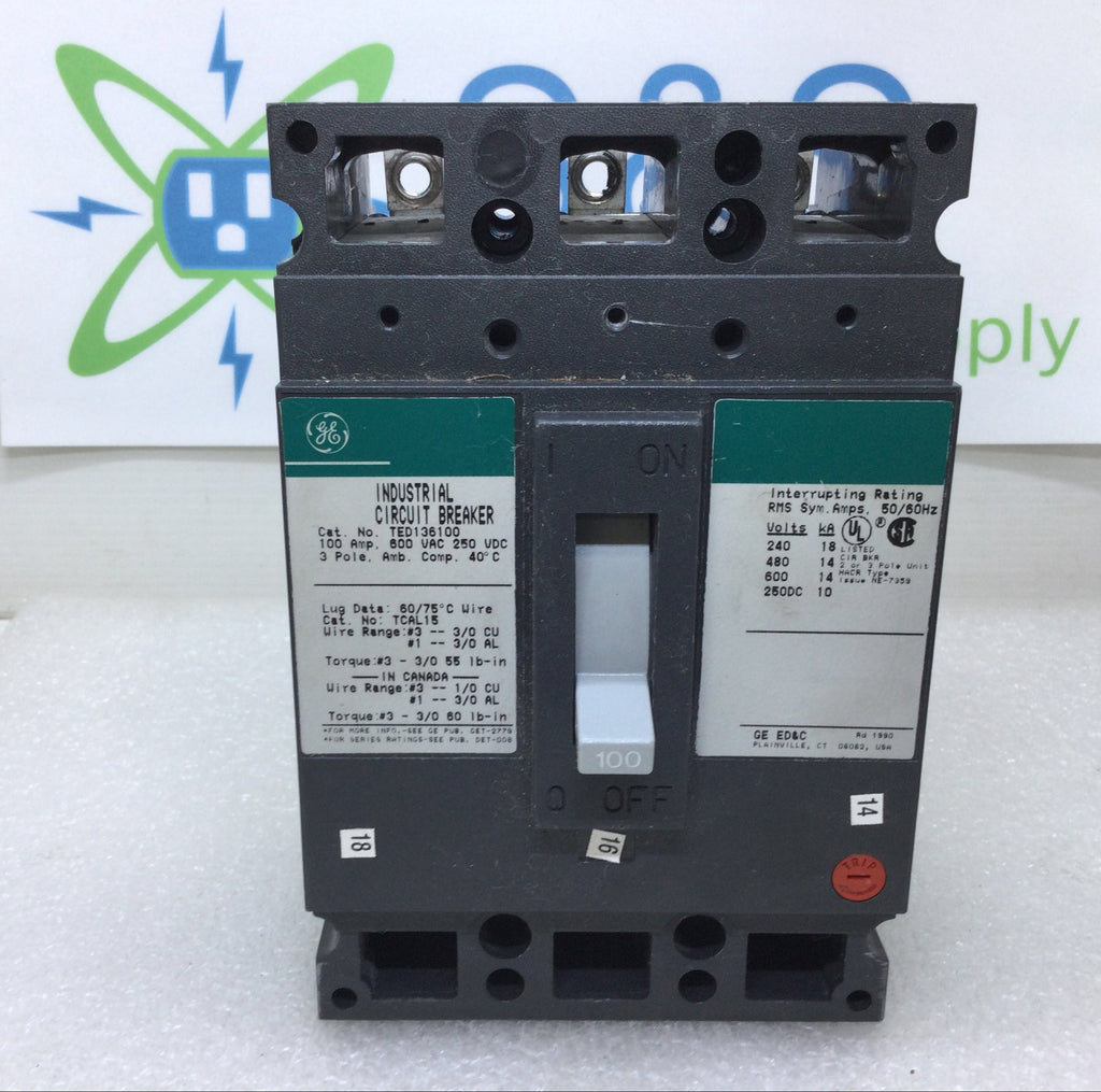 The General Electric TED136100 is a robust 100 Amp, 3-pole circuit breaker designed for 600V applications. Featuring an adjustable trip mechanism, it allows precise customization to protect electrical systems from overloads and faults. Ideal for industrial and commercial use, this breaker ensures reliable performance and enhanced safety in complex electrical setups.