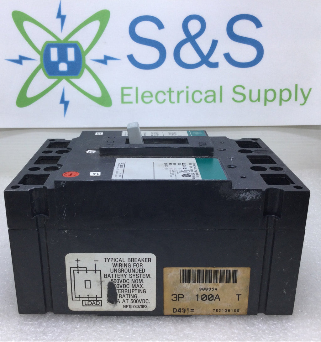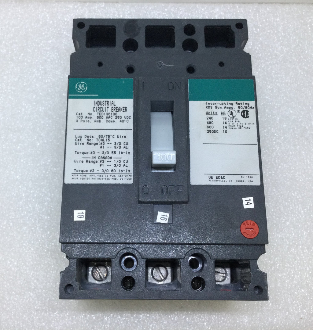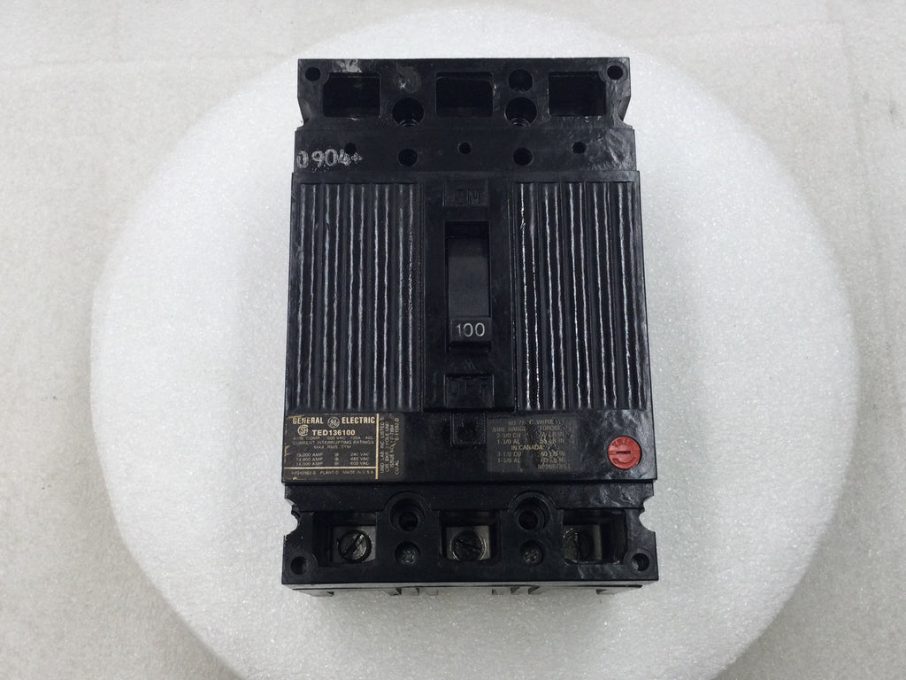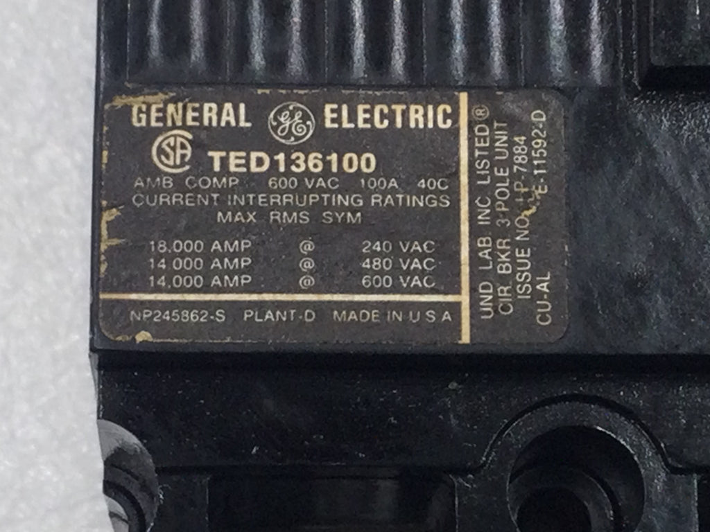 General Electric TED136100 100 Amp 3 Pole 600V Circuit Breaker w/Adjustable Trip