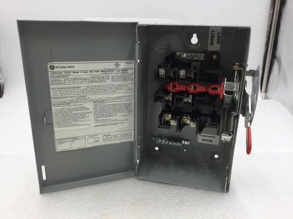 GE TG3221 30 Amp 2 Pole 3 Phase General Safety Switch provides reliable disconnect capability for three-phase 240V electrical systems. This Model 9 safety switch features a 30-amp rating and is engineered for industrial and commercial applications requiring dependable load isolation. Built to GE standards, it delivers the performance and durability electrical professionals expect for critical disconnect operations.