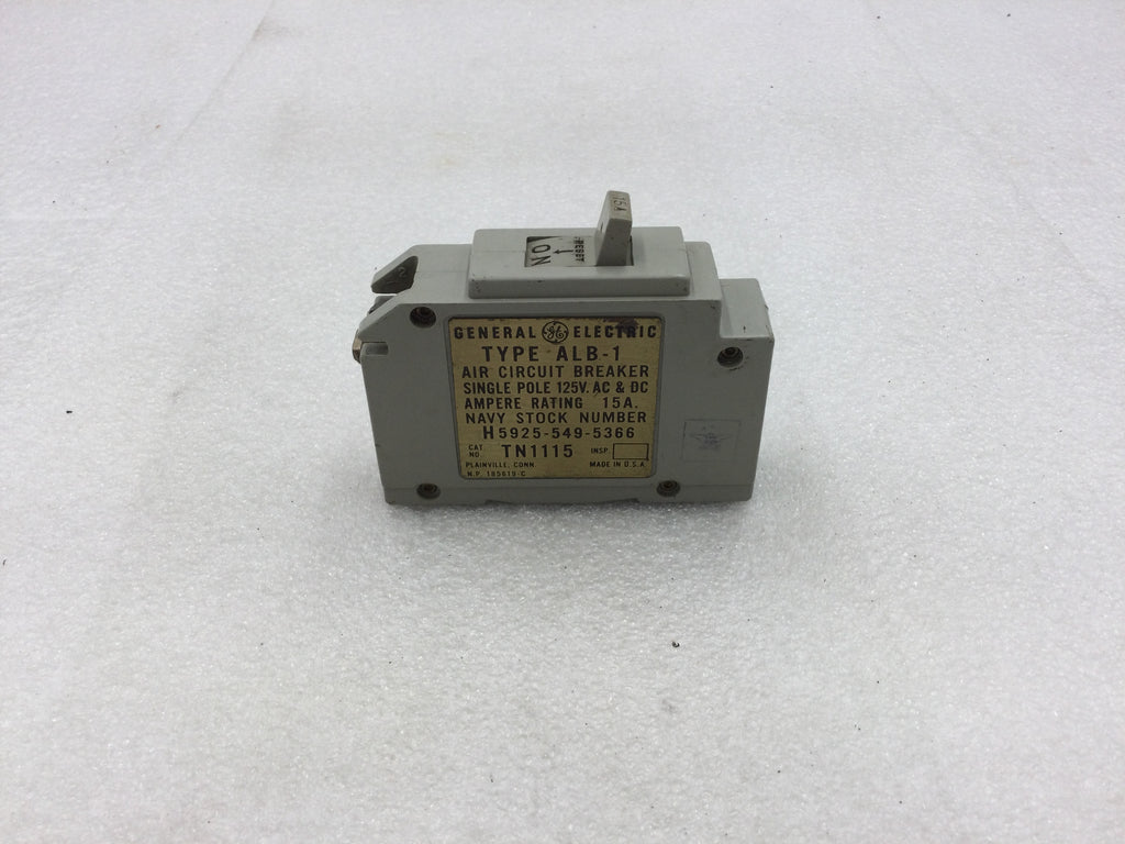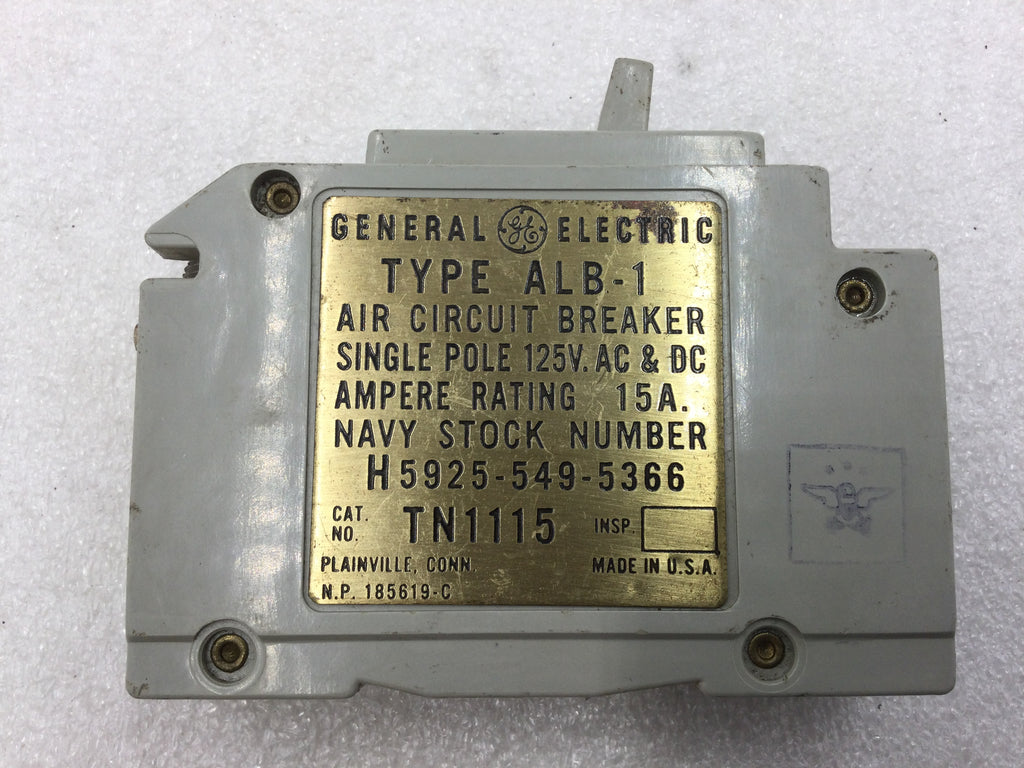 GE General Electric TN1115 Air Circuit Breaker 15 Amp 1 Pole Type ALB-1