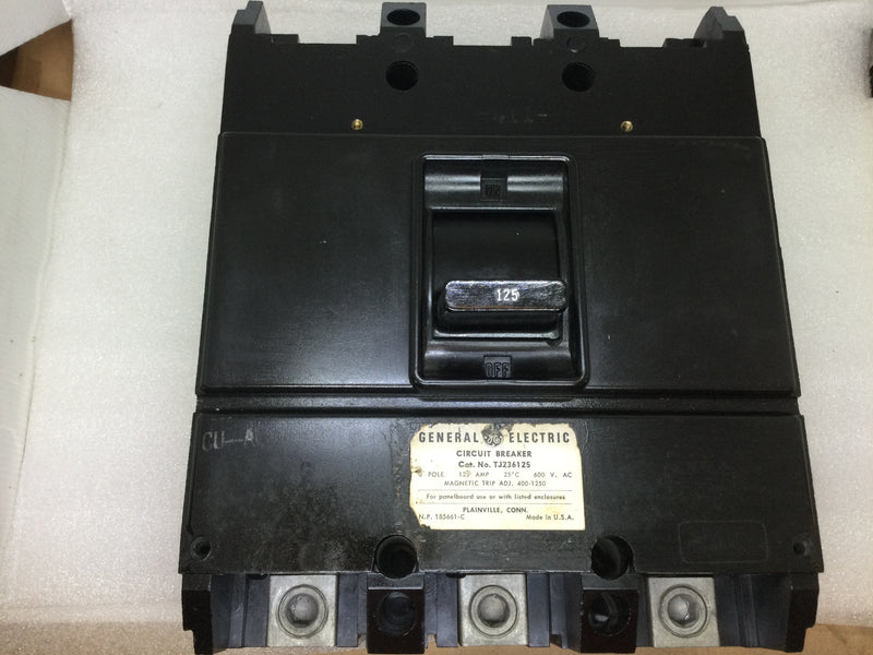 GE General Electric TJ236125 125 Amp 3 Pole 600V Circuit Breaker