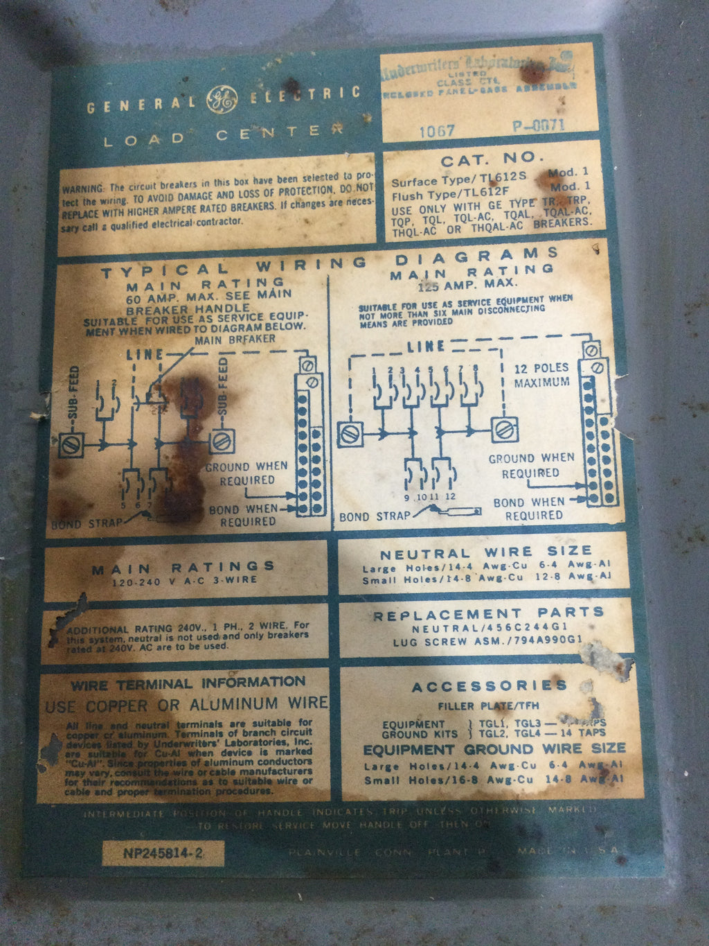 GE General Electric TL612S Mod. 1 Cover/Door Only with Main Switch 60-125 Amp Max 120/240V